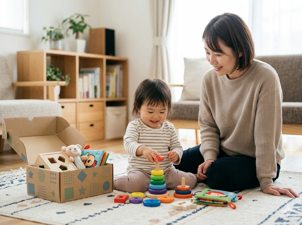 「1歳には早いのでは?」と思うかもしれませんが、実は多くのサービスが生後3ヶ月〜対応しています。1歳はむしろ「始め時」とも言える時期。なぜなら、この時期は脳の発達が爆発的に進み、月齢ごとに「ちょうどいい刺激」が変わるため、おもちゃの入れ替えが最も効果を発揮するからです。